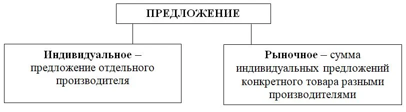 Принято различать индивидуальное и рыночное предложение. На рисунке показаны отличия между ними:
