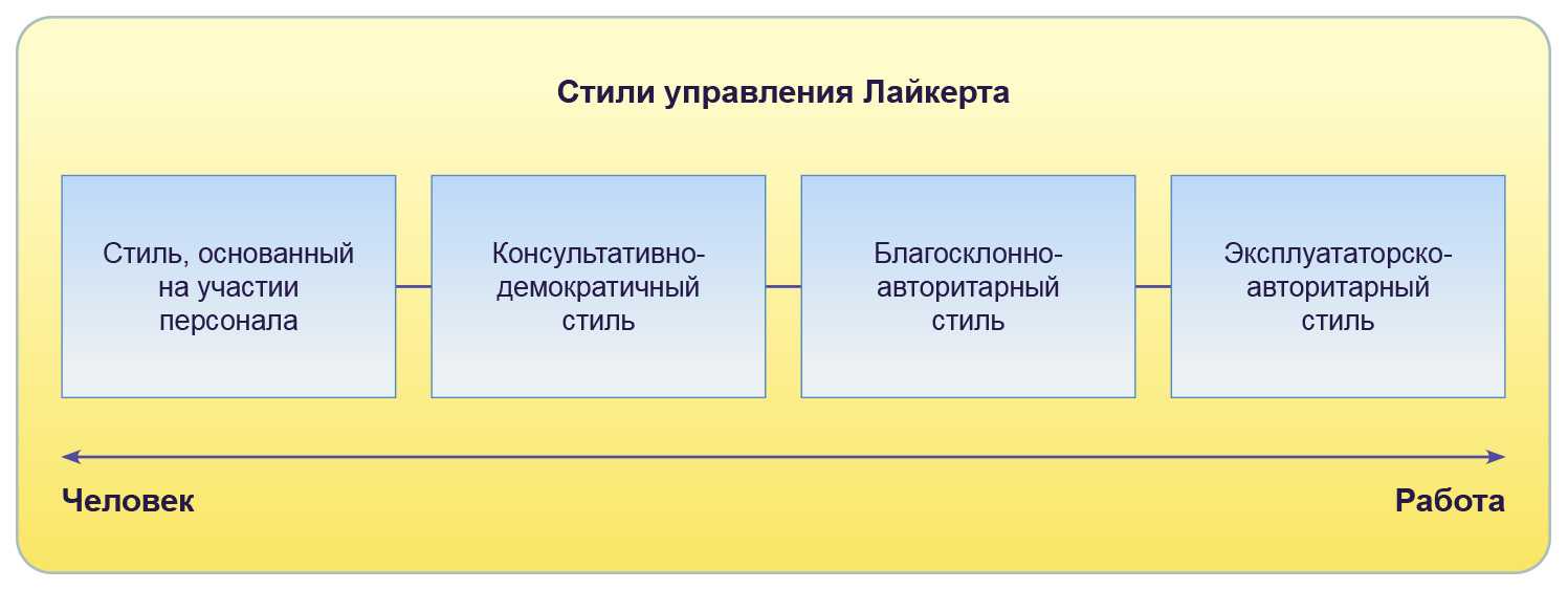 Еще одну классификацию стилей управления разработал американский социолог Р. Лайкертом. В ее основе – четыре теории управления, ориентированные либо на человека либо на работу (задачу). Графически это можно представить в виде рисунка 1:
