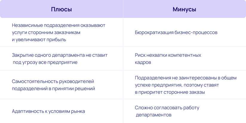 Таким образом, можно заключить, что в современных условиях недостатки структуры перевешивают ее достоинства.