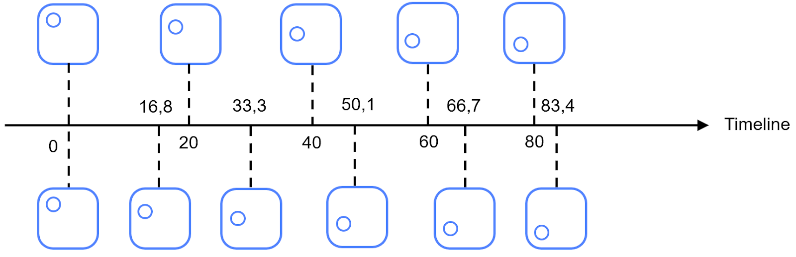 Чтобы понять, почему так происходит, посмотрим, как кадры сменяют друг друга на временной оси при разной частоте: