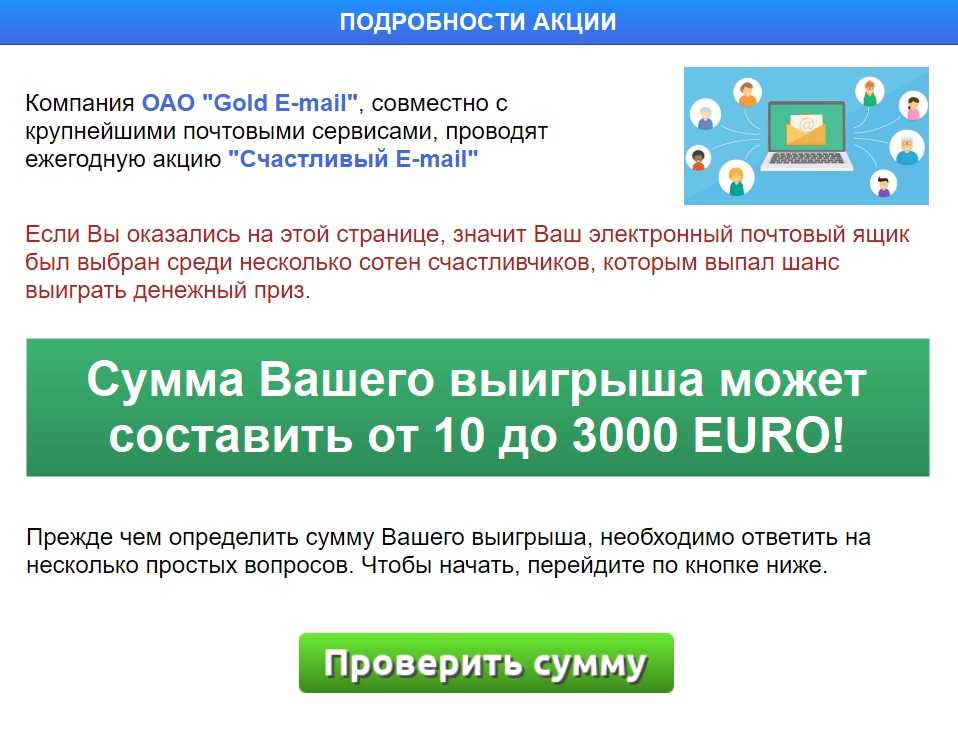Такой вид мошенничества встречается реже, так как современные почтовые сервисы имеют надёжные спам-фильтры и отправляют подозрительные письма в папку со спамом. Открывать их там точно не стоит.