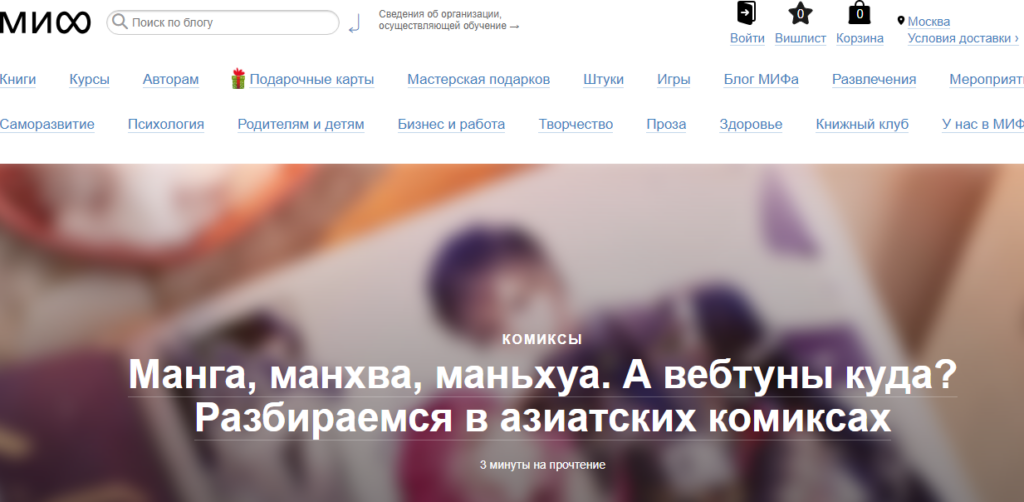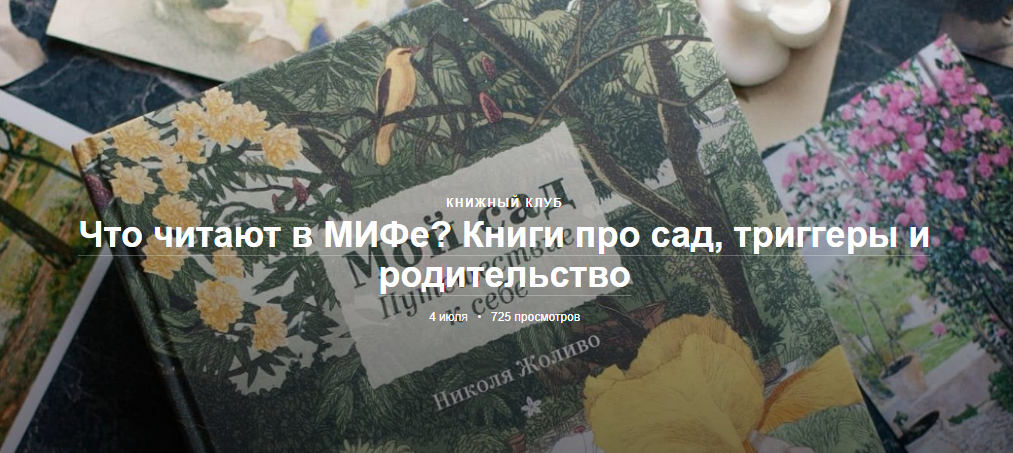Издательство «МИФ» ведет собственный блог, где публикует статьи о книгах, авторах, маркетинге, саморазвитии и психологии. Отдельно в медиа выделен большой раздел, посвященный бизнесу и управлению.