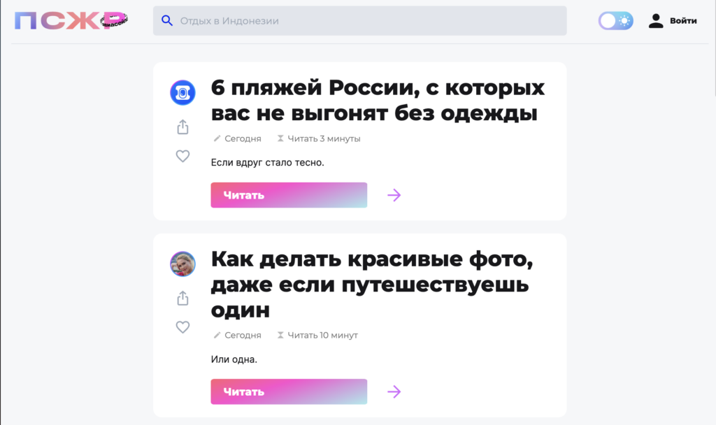 ПСЖР — относительно новое издание от компании Aviasales о путешествиях, где собраны истории и лайфхаки о поездках. Как рассказывает в подкасте «Маркетинг и реальность» руководитель отдела контент-маркетинга Aviasales Дарья Смирнова, позиция бренда — шутить над всем. Поэтому компания активно и с юмором реагирует на мировые новости, используя мемы и смешные картинки и, конечно, публикует информацию о авиабилетах, горящих турах и полезных разделах.
