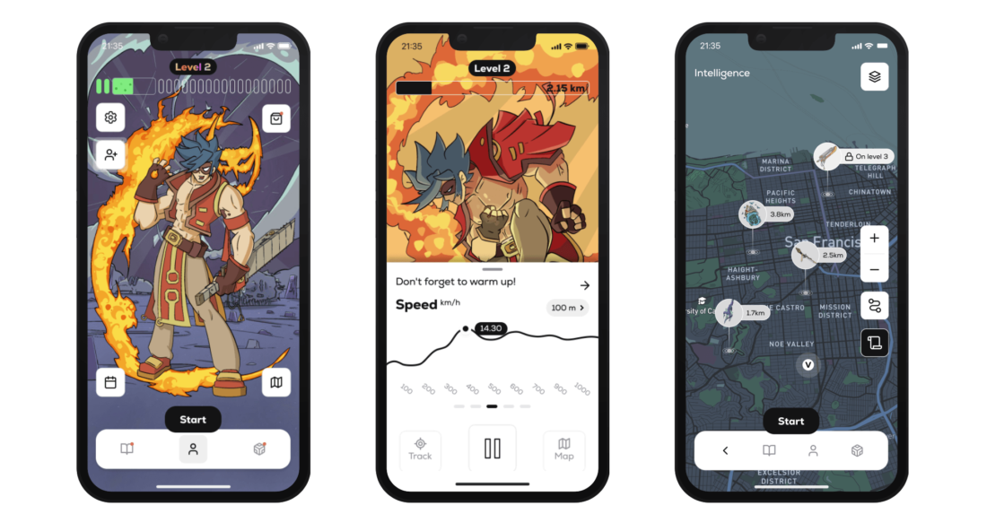Беговое приложение и шагомер с механиками прокачки персонажа и поиском артефактов на местности в стиле Pokemon Go.