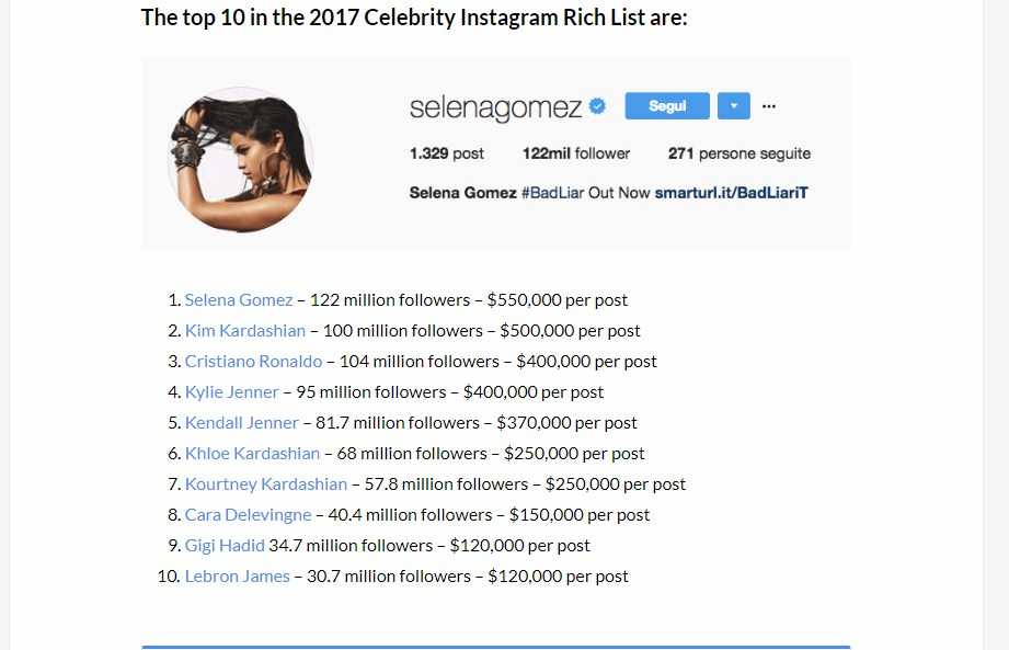 Самые высокооплачиваемые звезды Instagram по данным портала HooperHQ