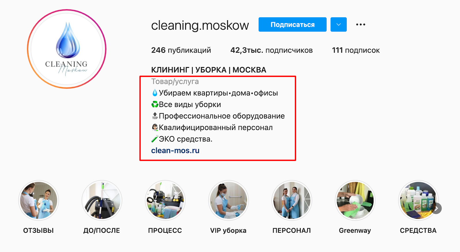 Для бизнес-аккаунтов и профилей компаний в описании укажите ваше УТП (уникальное торговое предложение), добавьте акции, скидки или лидмагниты.