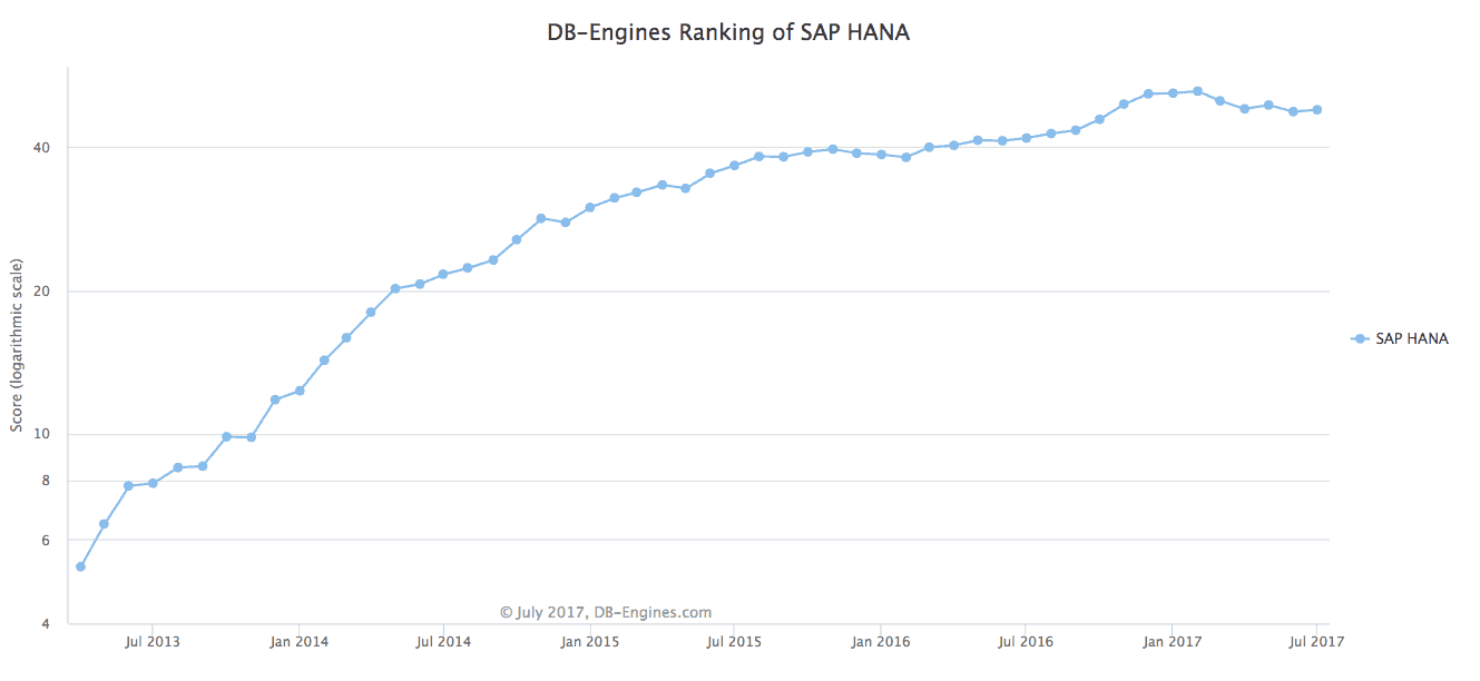 Это похоже на растущую базу данных? По данным DB-Engines, который оценивает популярность базы данных, объем HANA сокращается 8 месяцев. Следует признать, что SAP накачивает очень большой объем маркетинговых долларов и энергии компании в продвижение HANA, фактически в ущерб другим предложениям SAP. Вот почему будущее HANA на самом деле не выглядит хорошо. HANA выходит из главного стрима в приложениях, где она фактически добавляет некоторую разумную ценность и теперь получает отдачу от преувеличений SAP в сравнении с реалиями реального мира. IBM и Oracle все чаще выражают несогласие с SAP — хотя обе компании имеют отношения с SAP и в какой то мере зависят от SAP.