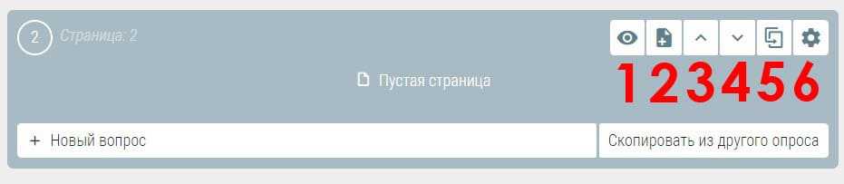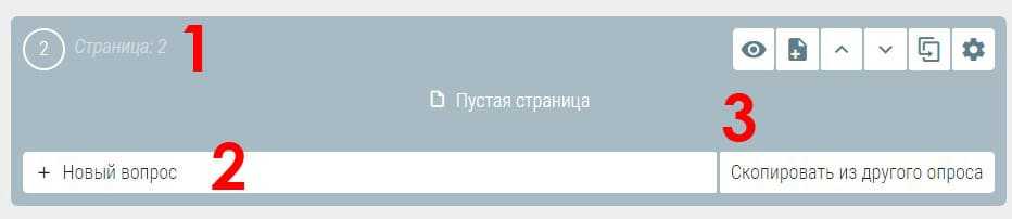 На странице можно задать заголовок (1), добавить вопрос (2), скопировать вопрос из другого опроса (3).