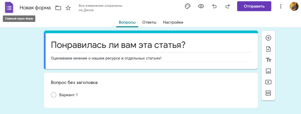 «Гугл Формс» — это площадка «Гугл», на которой можно создавать бесплатные опросы по любым тематикам с широким функционалом. Сам опрос создается в специальном редактора, в котором можно поставить свой шаблон, добавлять вопросы и ответы на них, вставлять картинки и видео. Статистика исследования отображается в прямо форме опроса, а при желание — можно скачать таблицу со всеми данными.