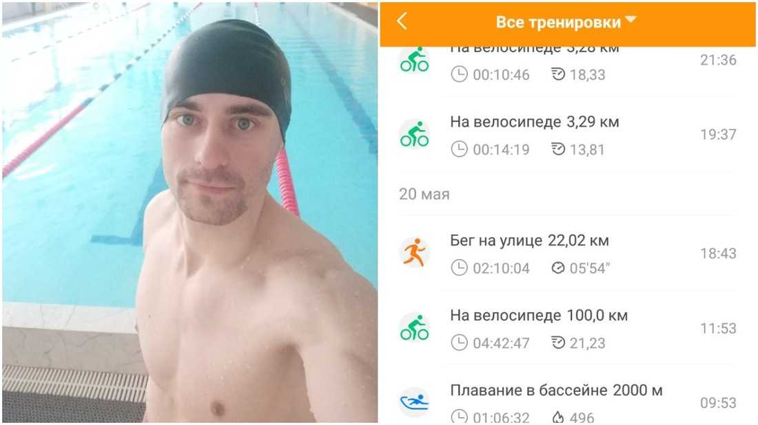 После восстановления решил попробовать велосипед и через 8 дней сделал марафонскую дистанцию уже на нем — 211 км. И занялся плаванием — это третья дисциплина в триатлоне.