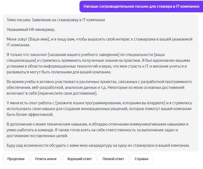 Начинаем наш топ нейросетей для генерации текстов разработкой от Яндекса. Она создает тексты разных жанров на разные темы, может написать письмо или статью, объяснить что-то непонятное, подсказать с идеей или дать совет. Причем промт можно не только писать, но и проговаривать через умные устройства компании.