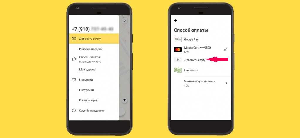 Чтобы пользоваться способом оплаты Яндекс Такси банковской картой, необходимо привязать ее в мобильном приложении: