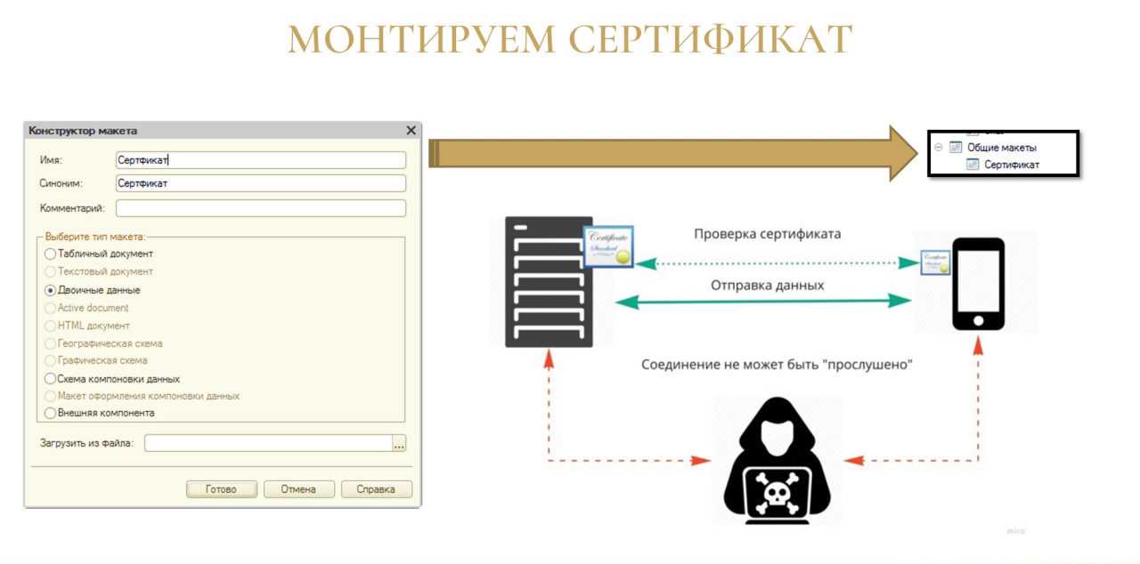 Как подключить сертификат к мобильному приложению ? Для этого мы создаем некий макет, преобразуем его в двоичные данные и помещаем туда сам файлик, который мы получили на предыдущем шаге.