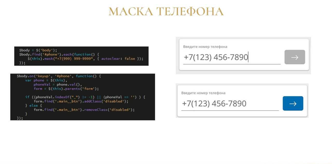 В поле управляемой формы по умолчанию есть возможность ввести любые цифры/буквы/символы. Меня это не устраивало – мне нужно было, чтобы можно было ввести только номер телефона, и чтобы сразу после заполнения этого телефона активизировалась кнопка.