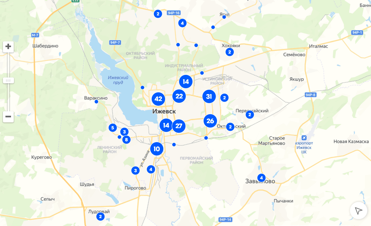 Количество ПВЗ Ozon в Ижевске