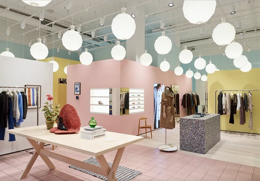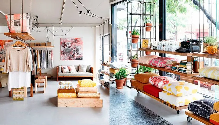 Главное влияние на выбор концепции дизайна оказывает вид товаров. Концепция дизайна, в сою очередь, включает выбор цветовой палитры и материалов, а также специфические параметры (такие, как, например, размещение витрин). Разрабатывая интерьер, дизайнер обязан учитывать следующие моменты: