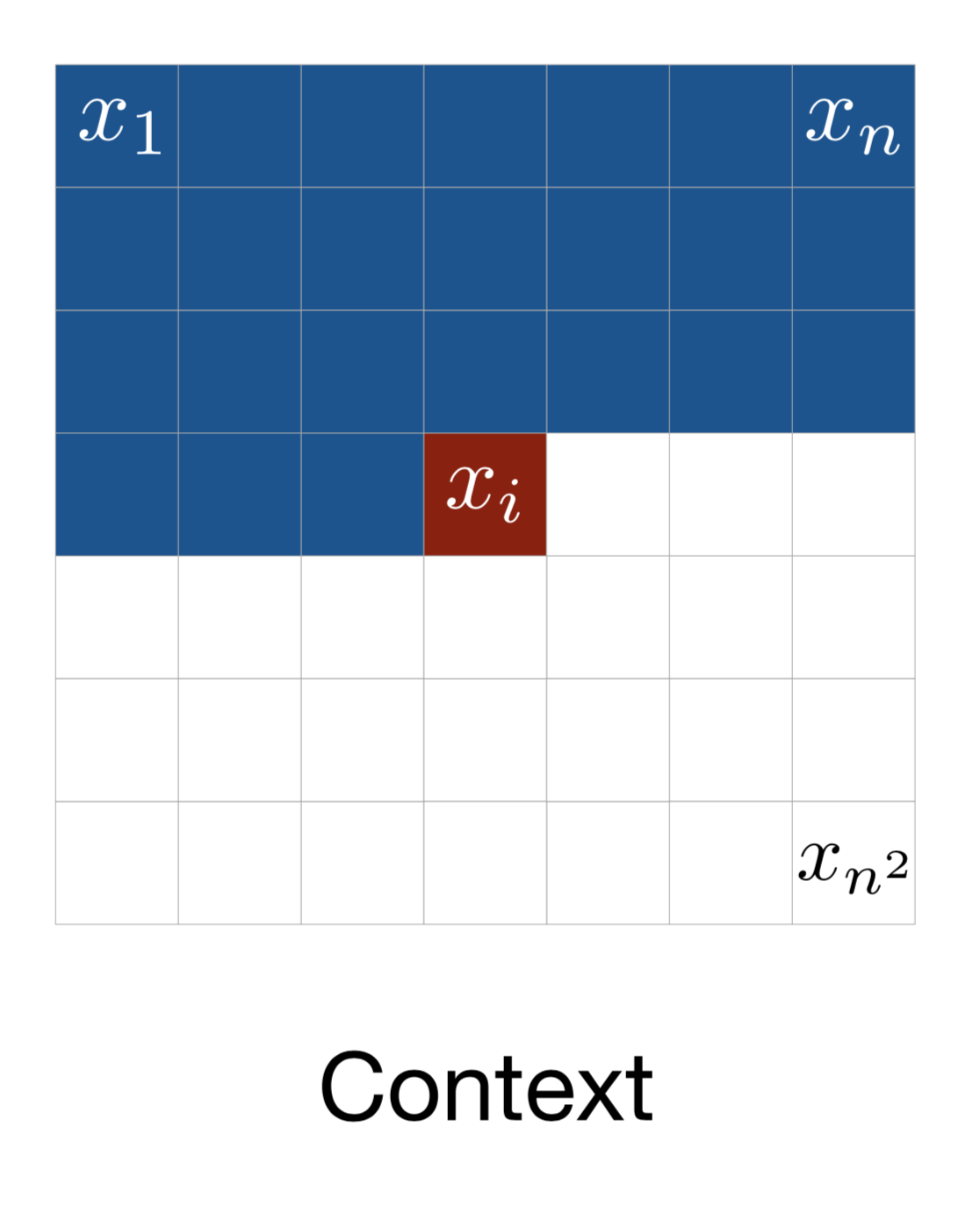 $p(\mathbf{x}) = \prod_{i=1}^D p(x_i\vert\mathbf{x}_{1:i-1})$