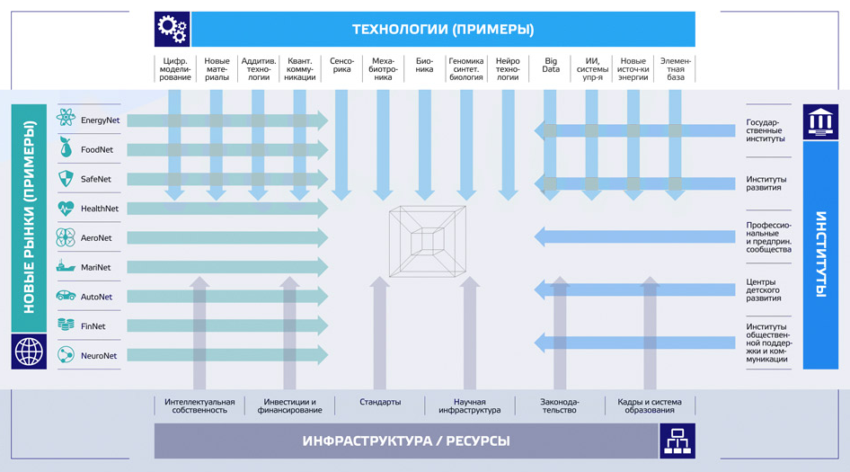 Данный подход позволит объединить усилия представителей бизнеса, научного и образовательного сообщества, государства, международных партнеров и всего общества в интересах развития новых высокотехнологичных отраслей отечественной экономики.