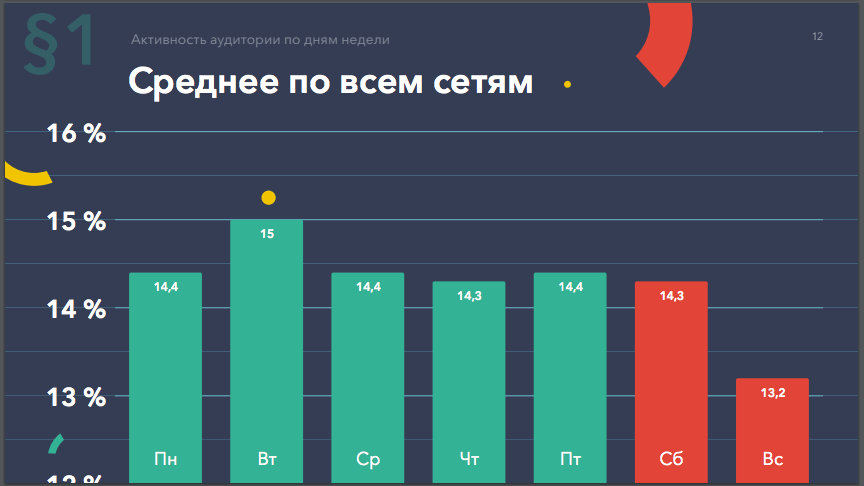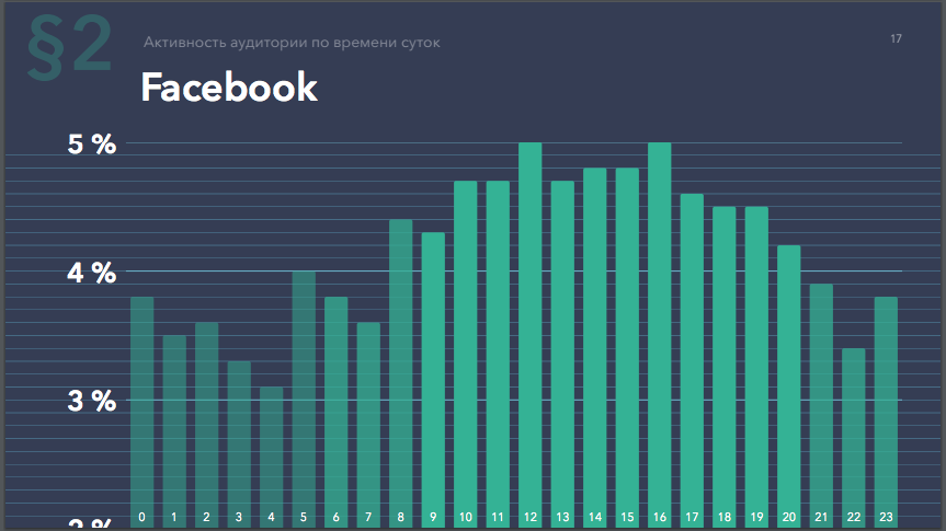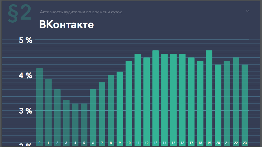 На первом скриншоте мы можем видеть самые «горячие» дни недели, на остальных – анализ времени суток, в которые пользователи заходят в онлайн.