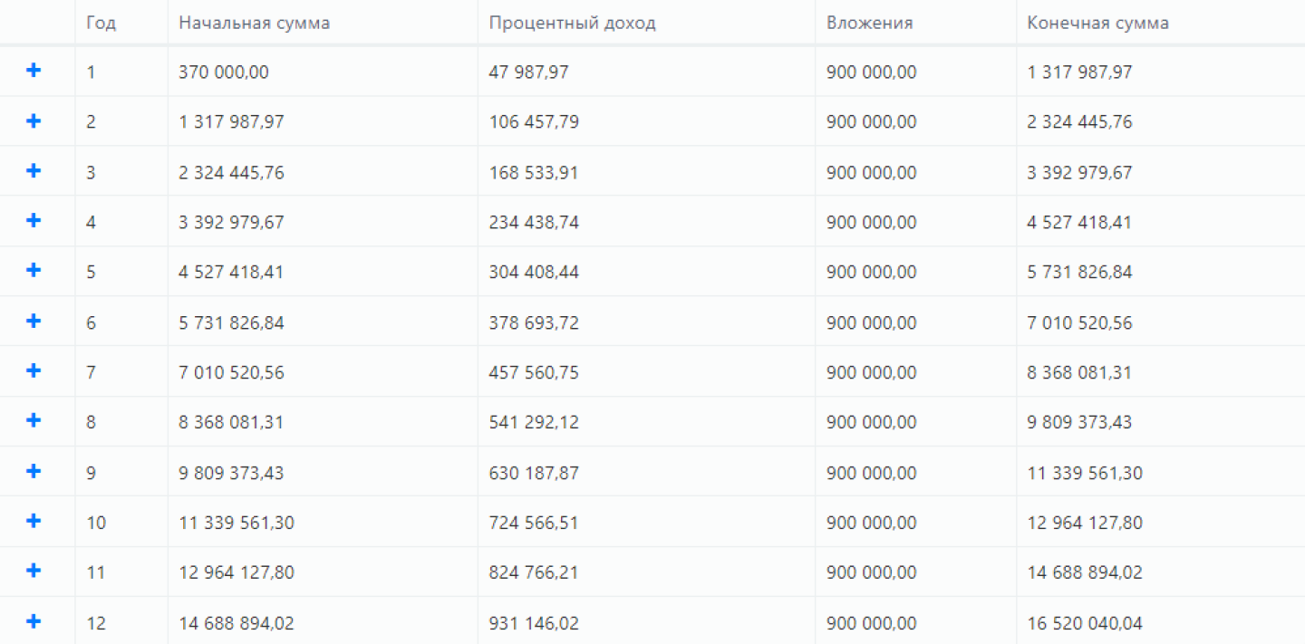 На пенсии Михаил планирует тратить 80 000 рублей в месяц — значит, в год ему понадобится 960 000 рублей. С учетом дополнительного дохода 25 000 рублей за сдачу квартиры ему нужно будет снимать ежегодно только 660 000 рублей — эта сумма должна составлять 4% от всего капитала.