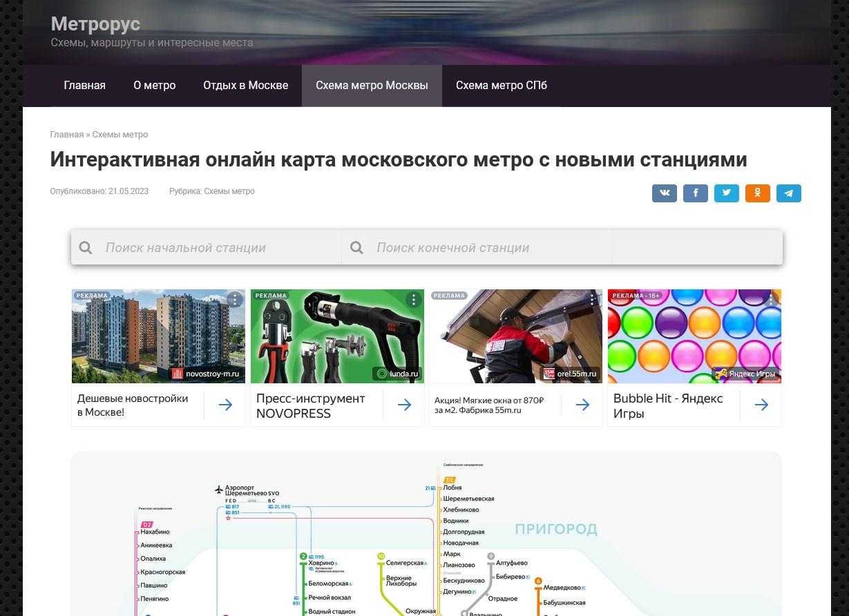 Новая схема метро Москвы в 2023 году с расчётом времени
