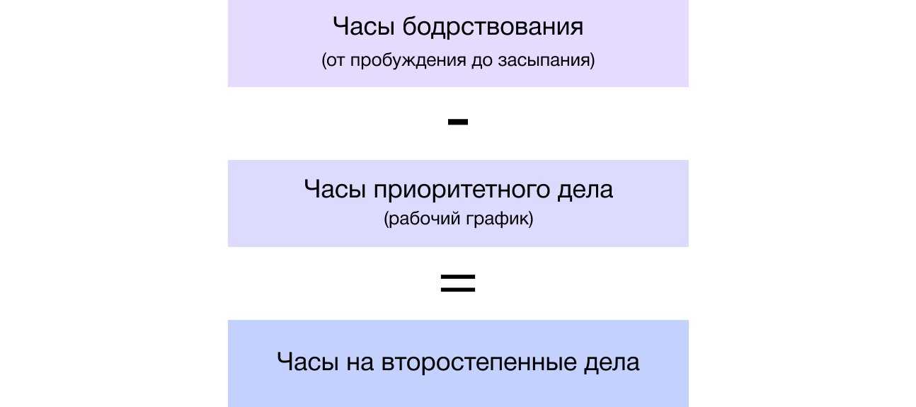 Первый шаг — посчитайте своё свободное время для второстепенных дел и узнайте, сколько времени на них остаётся: