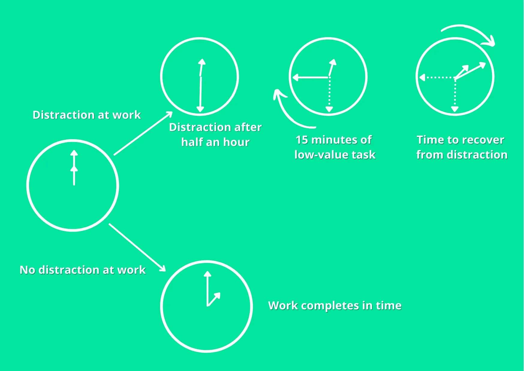 И неудивительно, что о 70% профессионалов в области знаний поддерживают активными свои почтовые ящики или уведомления в течение всего дня. Переключение между задачами нарушает непрерывность и концентрацию в самые продуктивные часы.