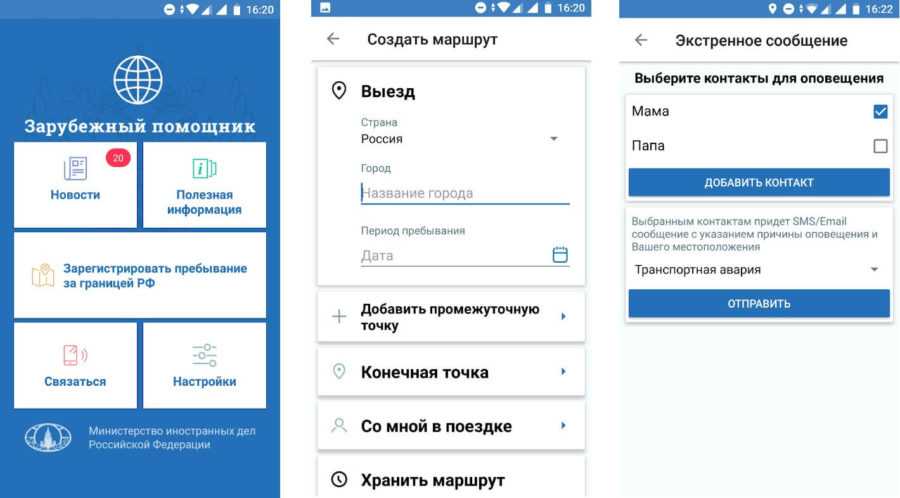 Платформа для взаимодействия МИД России с гражданами РФ, находящимися за рубежом. Зарубежный помощник предназначен для совершения звонков в посольство при возникновении экстренных ситуаций, для просмотра новостей о метеопредупреждениях, наводнениях и ДТП, а еще – для подачи документов и даже для получения временного паспорта.