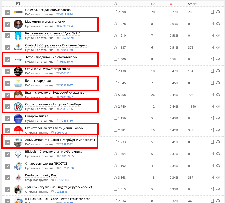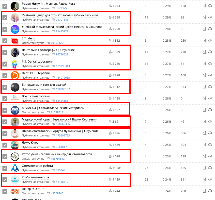 Анализ также показал, что на юриста подписаны в основном стоматологи. То есть анализ можно использовать как для поиска релевантных сообществ, так и для уточнения и расширения сегментов целевой аудитории. Об этом поговорим в отдельной статье.