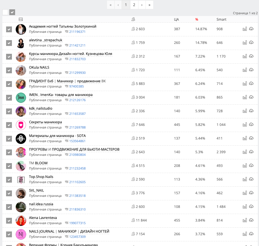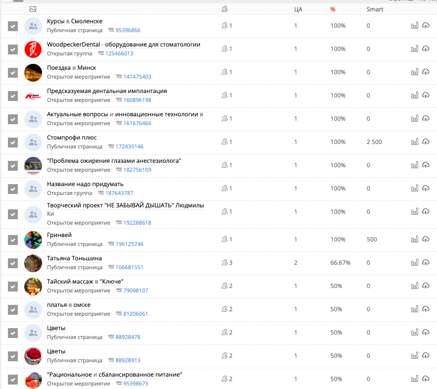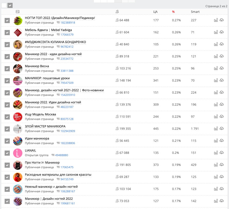 Чем больше людей из исходной аудитории подписаны на конечные сообщества, тем последние более качественные и их меньшеКачественные это те, в которых состоит преимущественно нужная аудитория. Нет сообществ со 100% целевых подписчиков. Например, на сообщества конкурентов будут подписаны их сотрудники и специалисты по рекламе.
