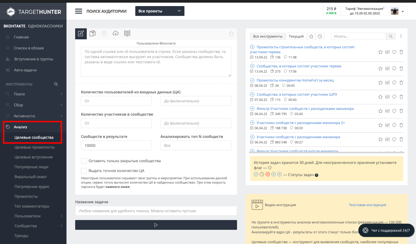 Поиск групп с целевой аудиторей по шагам