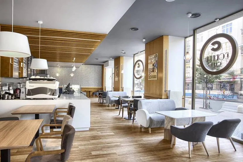 Минимализм. Интерьер кафе в стиле минимализм отличается лаконичностью и подходит для небольших помещений; главная цель дизайна — практичность и функциональность. В качестве основного цвета используется белый; его дополняют оттенки серого, коричневого и бежевого. Иногда, чтобы сделать атмосферу уютнее, добавляют насыщенные цвета: глубокий синий, зеленый, горчичный