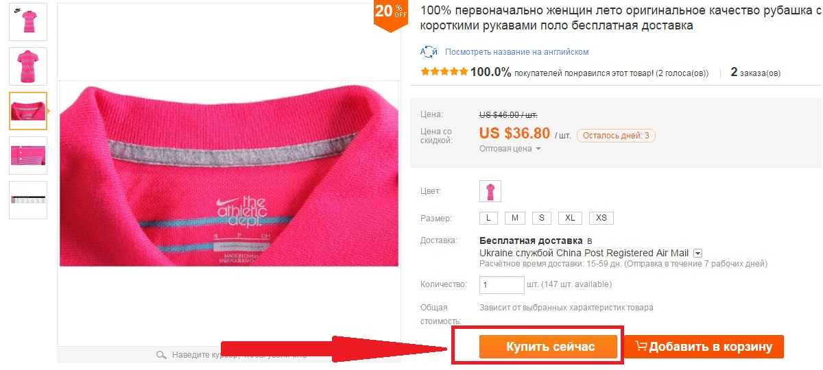 - Доставка. Внизу показано, сколько дней будет идти товар. Часто там пишут 49 или 60 дней. На самом деле, большая часть товаров доставляется за две недели. Точную дату доставки следует узнавать у продавца.