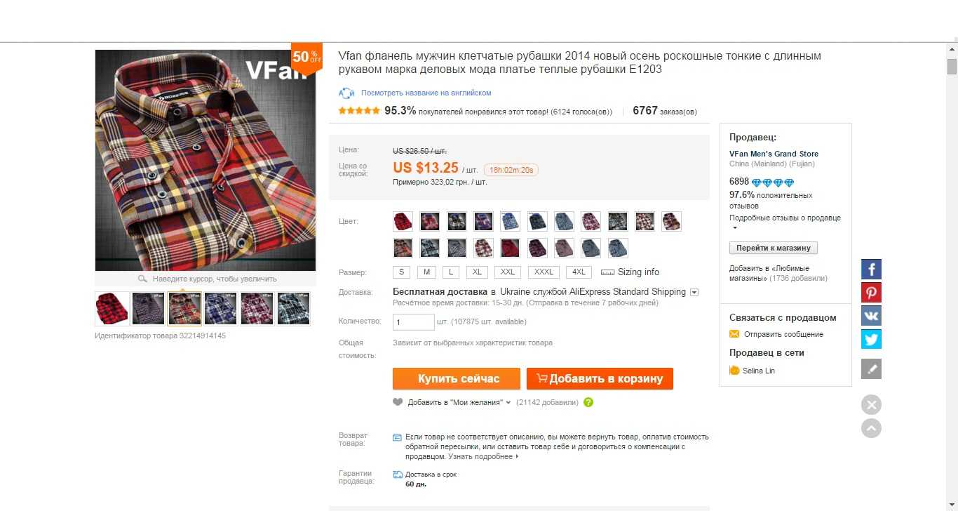 Итак, мы выбираем категорию «Одежда для мужчин» — «Рубашки». Перед нами будет целый каталог товаров. Кликаем на понравившуюся вещь