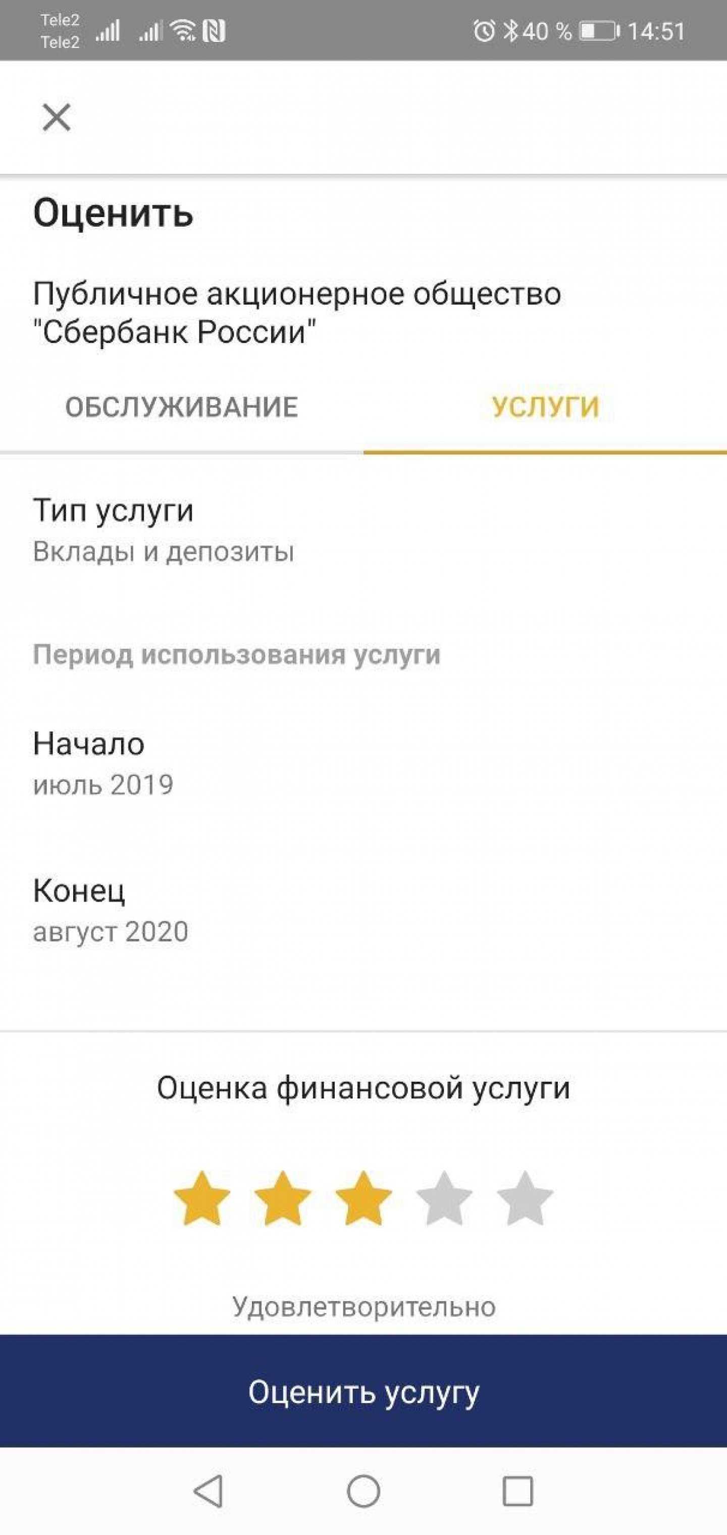 Оценка финансовой услуги банка в приложении «ЦБ онлайн»