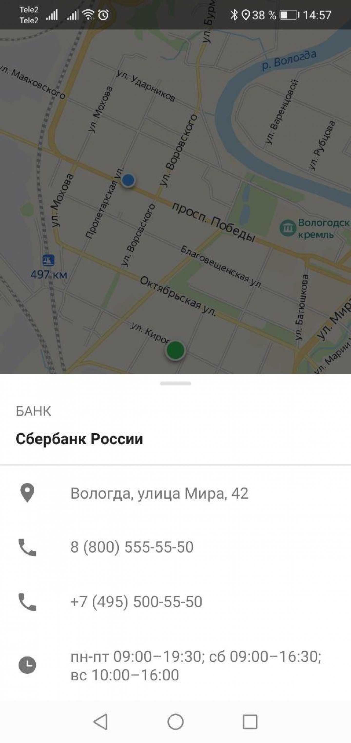 Кроме того, пользователь может посмотреть офисы банка в своём городе, узнать время работы и контактный телефон.