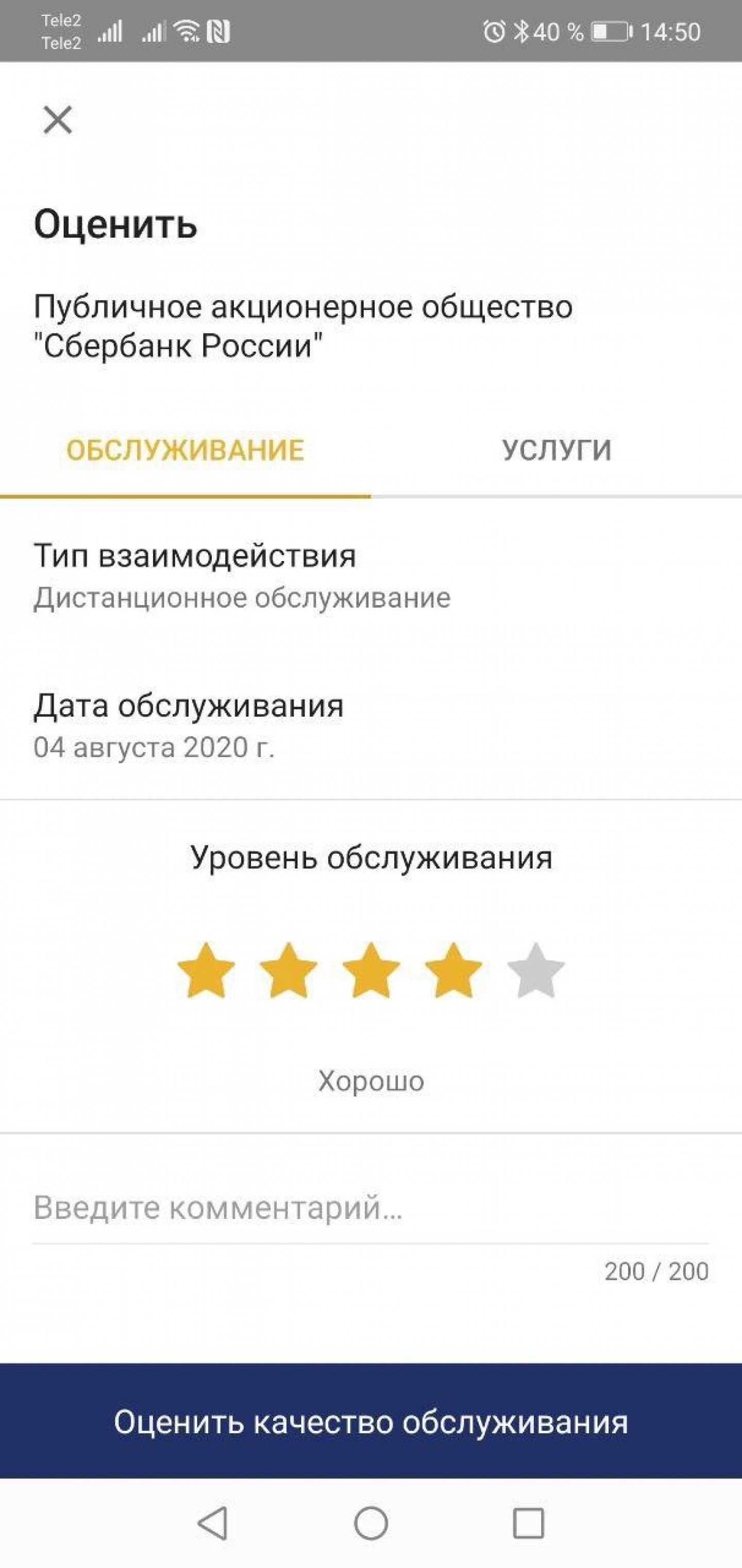Оценка качества обслуживания в банке в приложении «ЦБ онлайн»