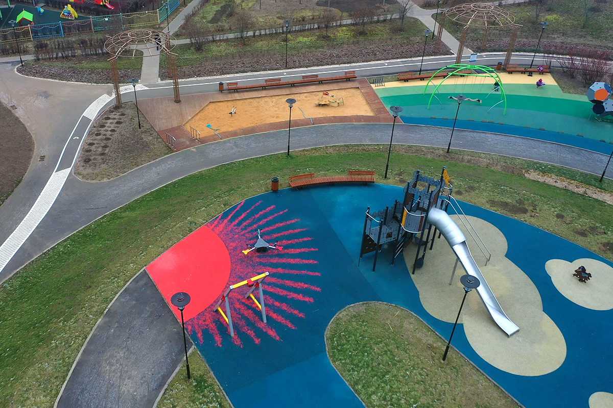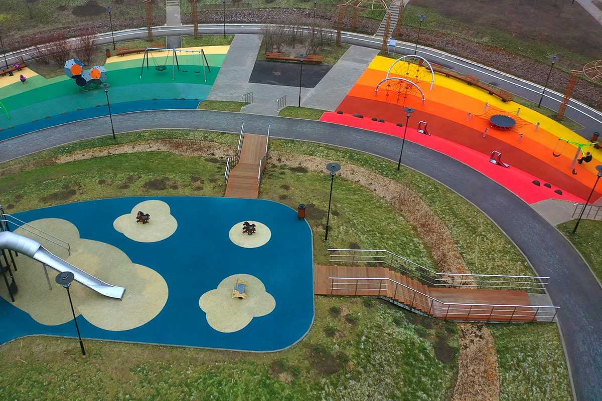 Помимо этого, в 2019 году в Куркине благоустроили еще одно знаковое место для отдыха – Детский парк в 3 микрорайоне. Игровые площадки здесь выполнены в соответствии с необычной стилистической концепцией – каждая символизирует одну из четырех природных стихий: огонь, землю, воду и воздух. По всей территории также проложили пешеходные дорожки, поставили беседки и лавочки, обновили амфитеатр. Новый парк пригоден для маломобильных групп населения: все съезды и все пересечения дорожно-тропиночных сетей здесь выполнены на одном уровне, без перепадов высот.