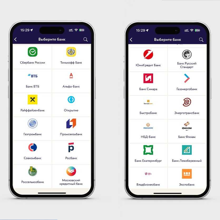 В приложение добавили популярные и малоизвестные банки. Есть Сбербанк, Альфа-Банк, ВТБ, МТС, Почта Банк, Райффайзен, Тинькофф и др. Всего около 180 банков.