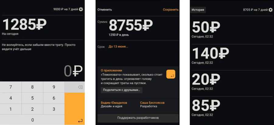 Постоянно обновляющаяся система лимитов: если за день потрачено больше (или меньше), чем предполагалось, то «Тяжеловато» пересчитает финансы
