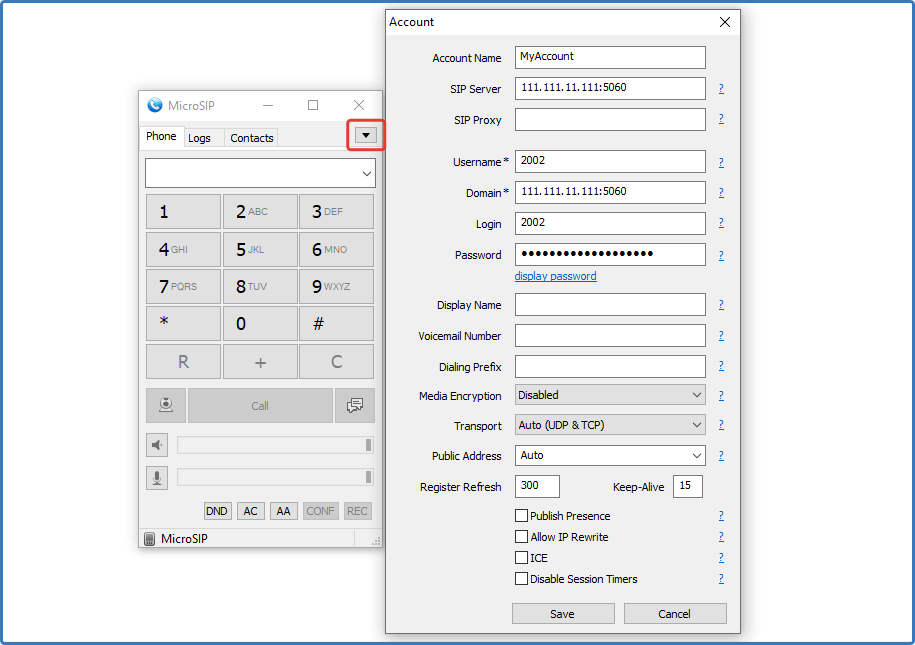 - имя сервера FreePBX — Domain и порт Server:Port;