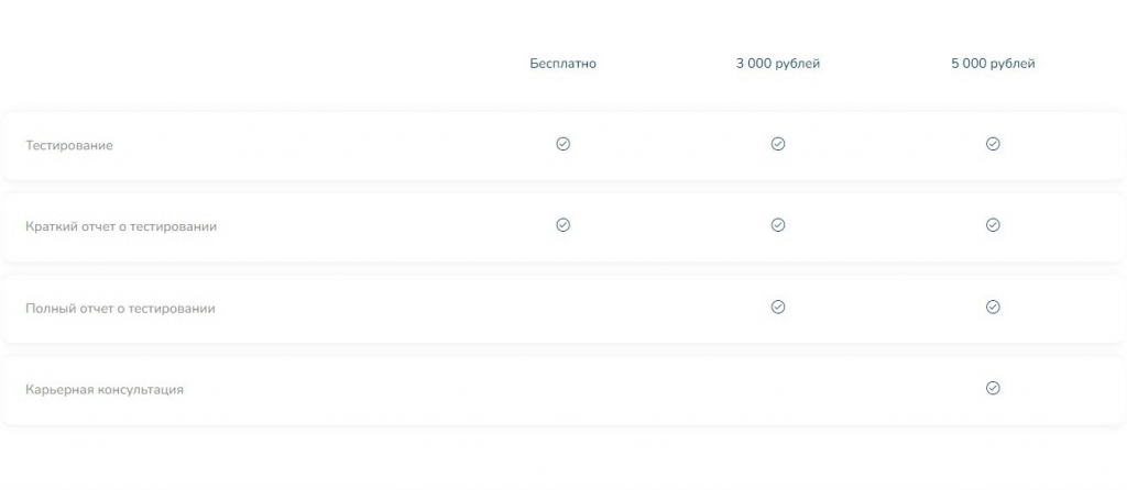 Цена: краткий отчёт — бесплатно, полный отчёт — 3 тысячи рублей, полный отчёт + карьерная консультация — 5 тысяч рублей.
