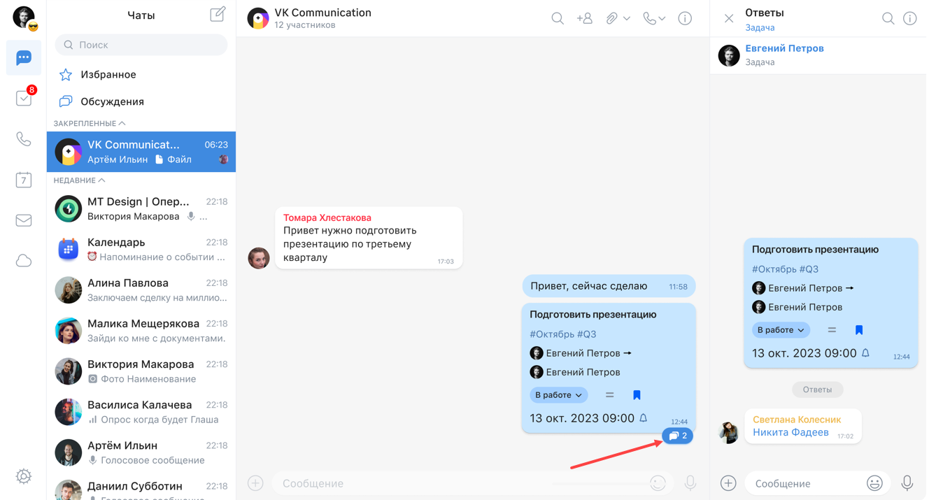 Чтобы начать обсуждение задачи, нажмите на карточку задачи в сервисе Задачи: