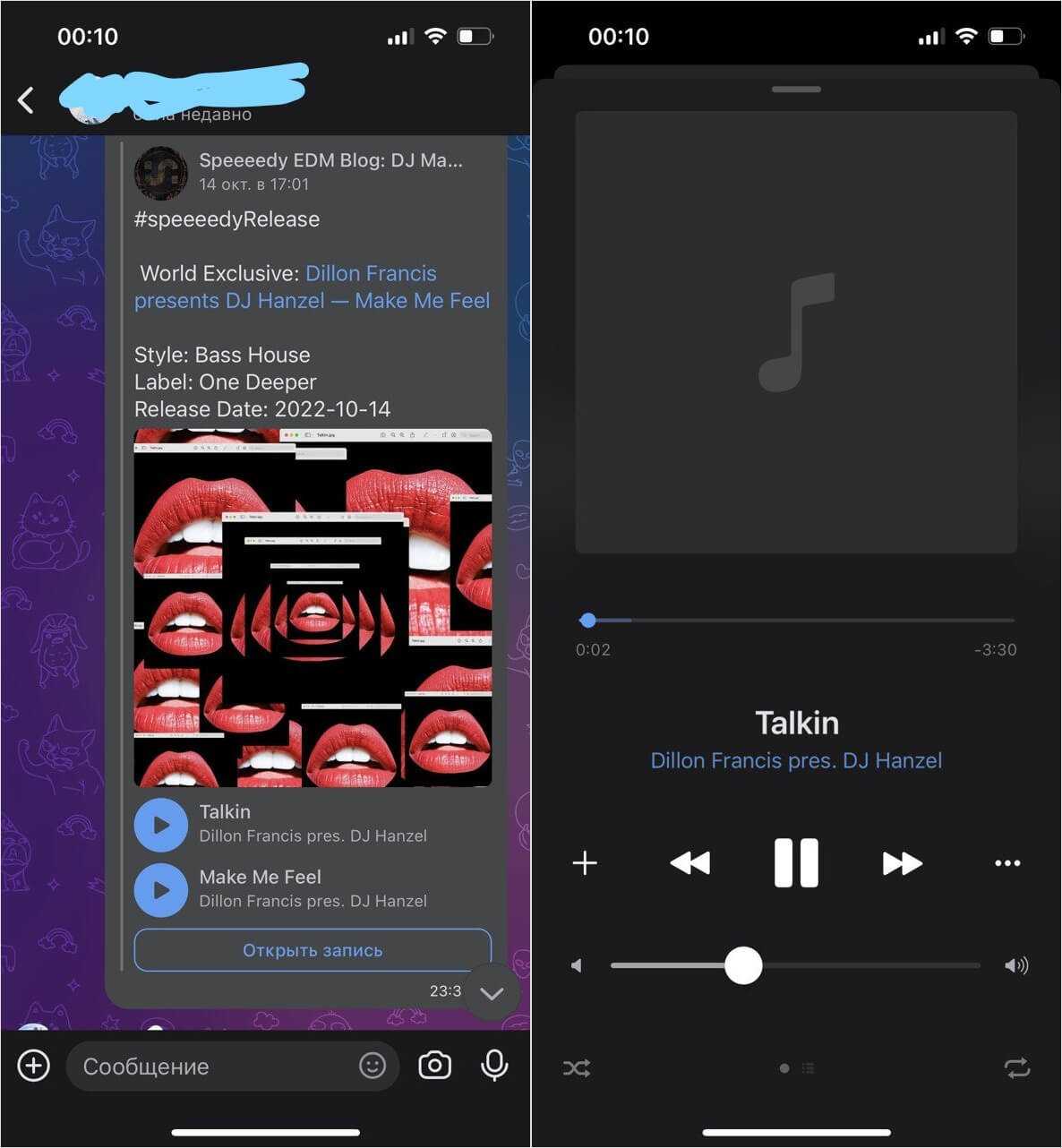 Музыку можно слушать прямо из мессенджера, но доступа к собственной медиатеке здесь нет