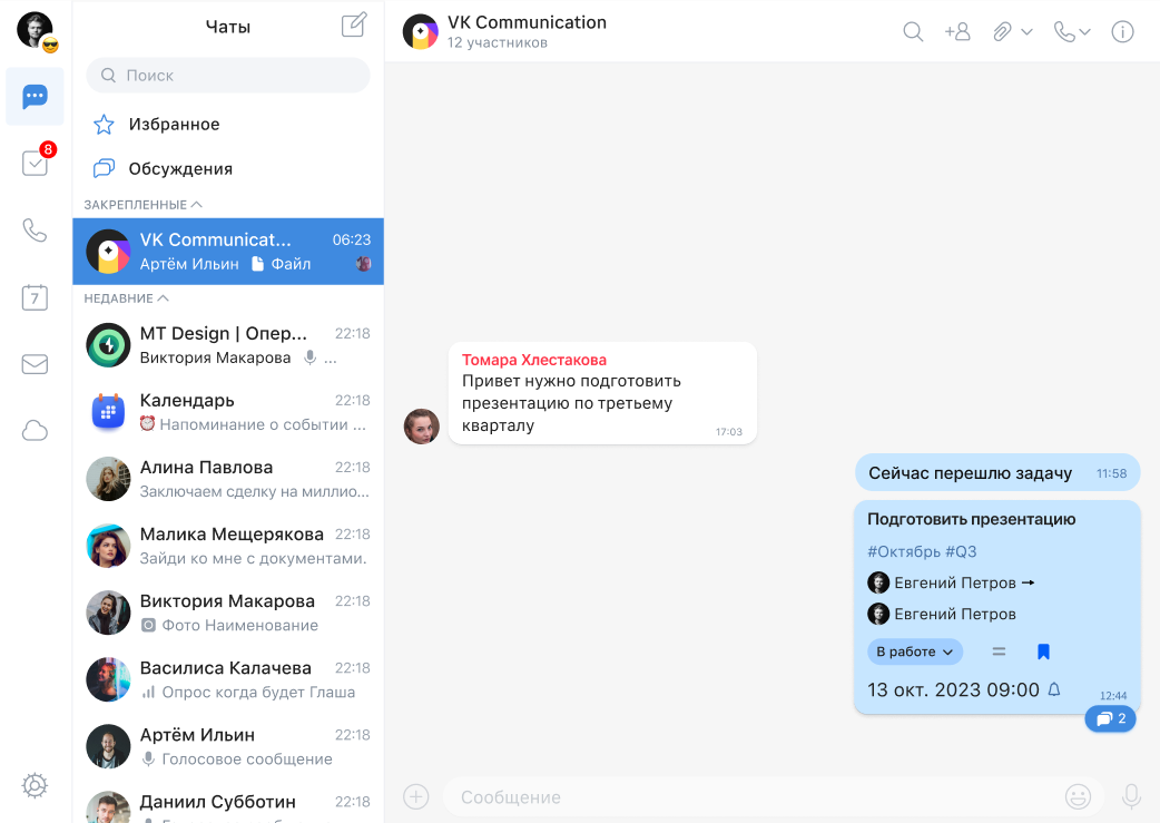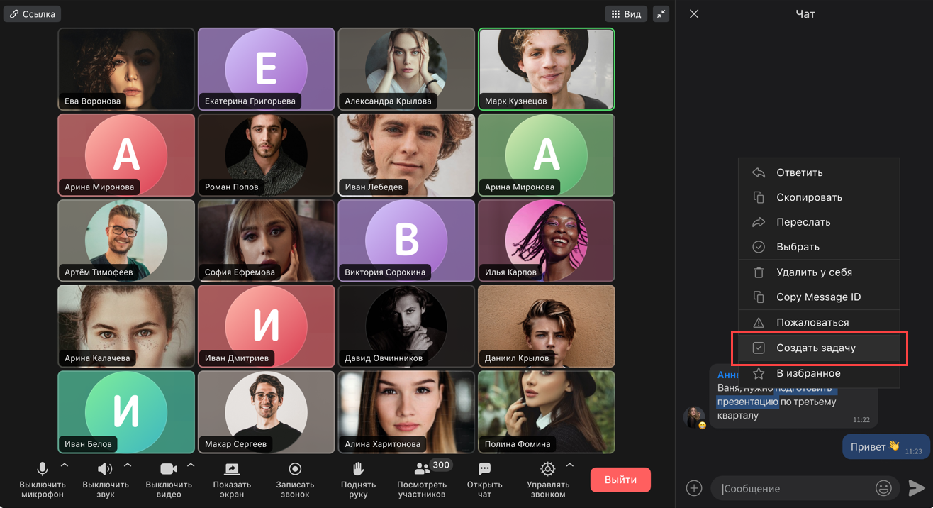 Превью задачи отобразится в чате: