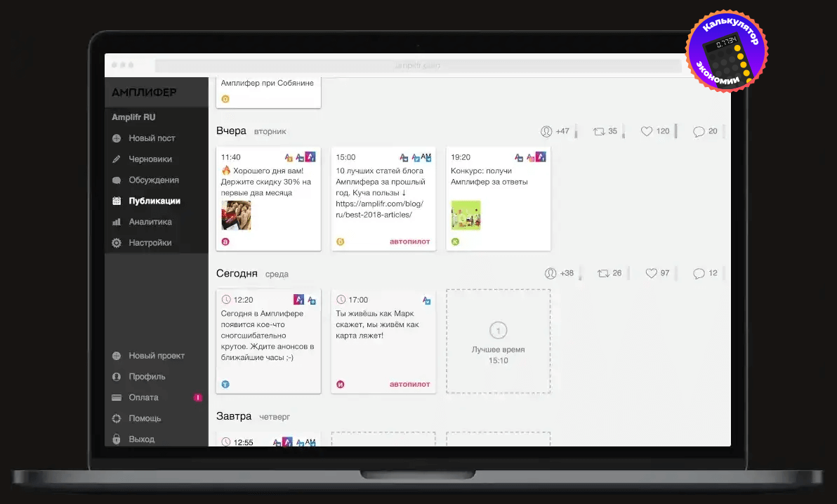 Кроме того, у площадки есть интересная функция «Автопилот». Это алгоритм, который находит ваши самые удачные посты и публикует их еще раз. Это позволит новым подписчикам увидеть интересный контент, а аккаунту поднять охват.