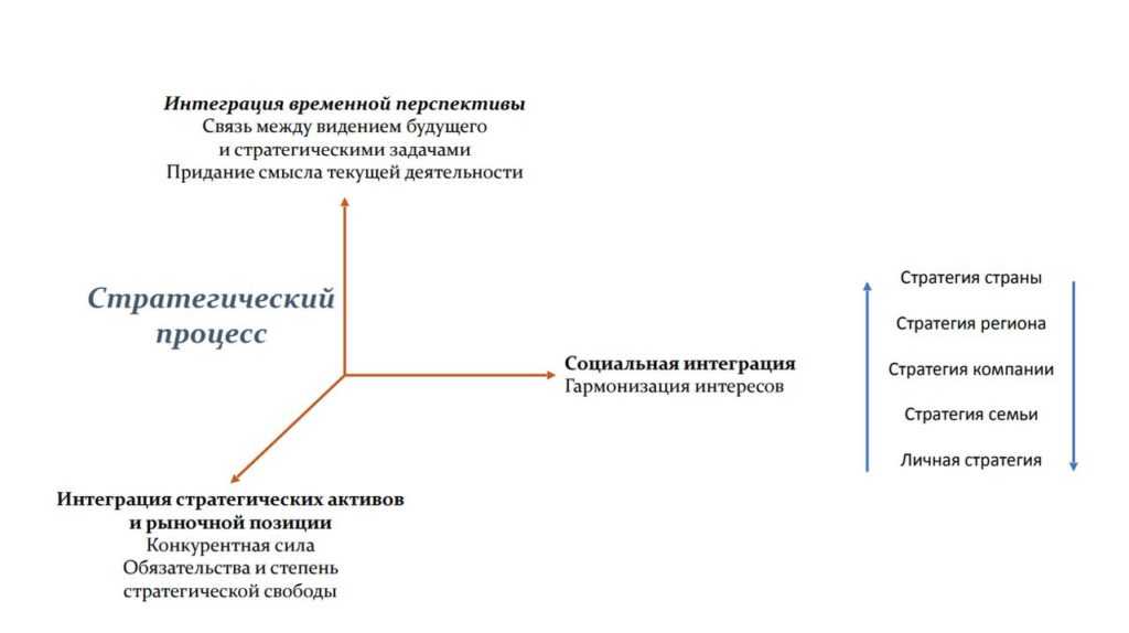 Можно говорить о личной стратегии, стратегии семьи или ближайшего социального окружения, можно говорить о стратегии компании, стратегии города, страны. Все стратегические решения на разных уровнях должны гармонировать друг с другом. И в конечном итоге в основе всех стратегий лежит личная стратегия.