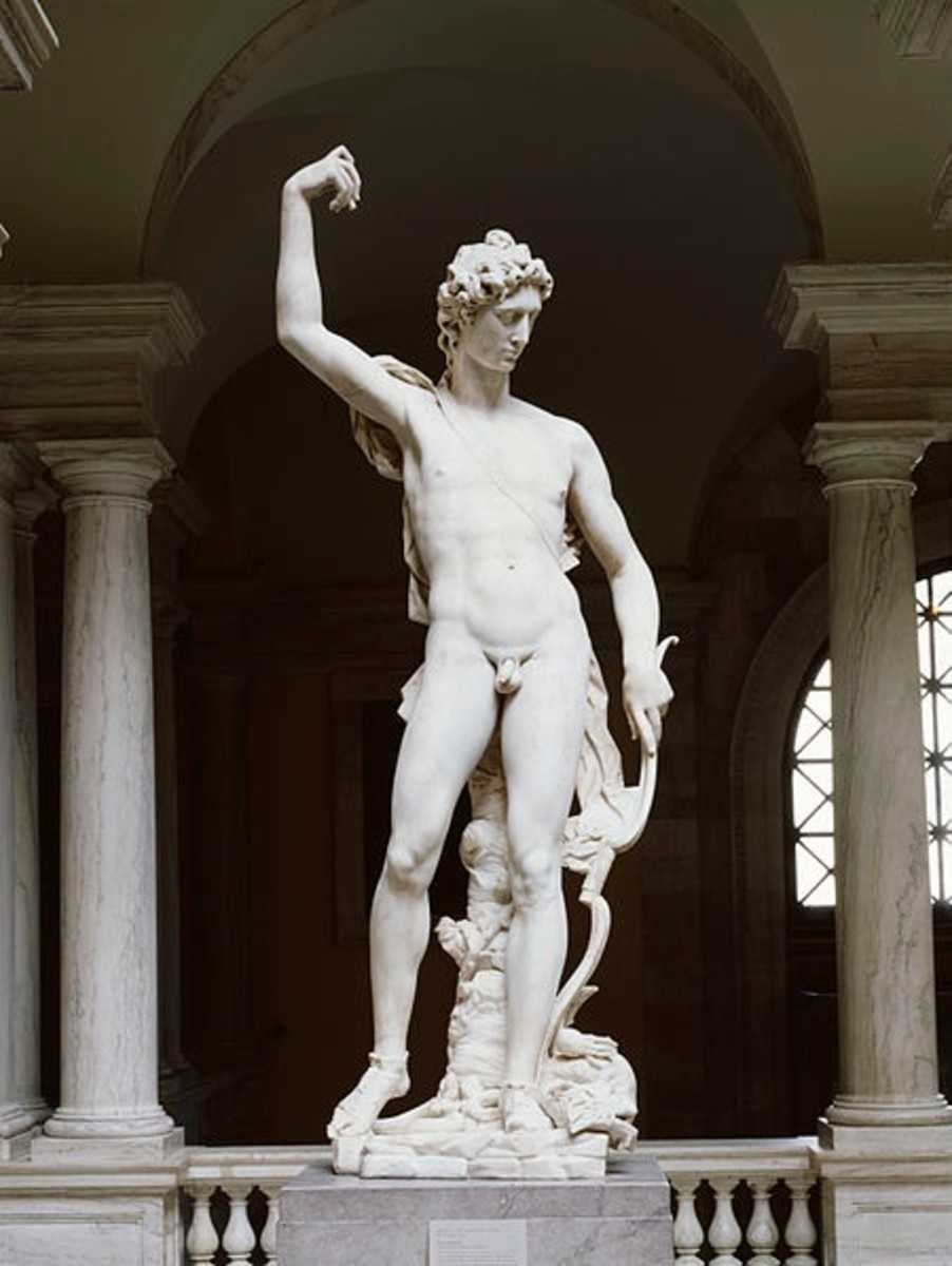 Эта статуя изображает бога Солнца Аполлона со змеем Пифоном, лежащим мертвым у его ног. Первоначально статуя находилась во Флоренции, Италия, а сейчас находится в музее Балтимора.
