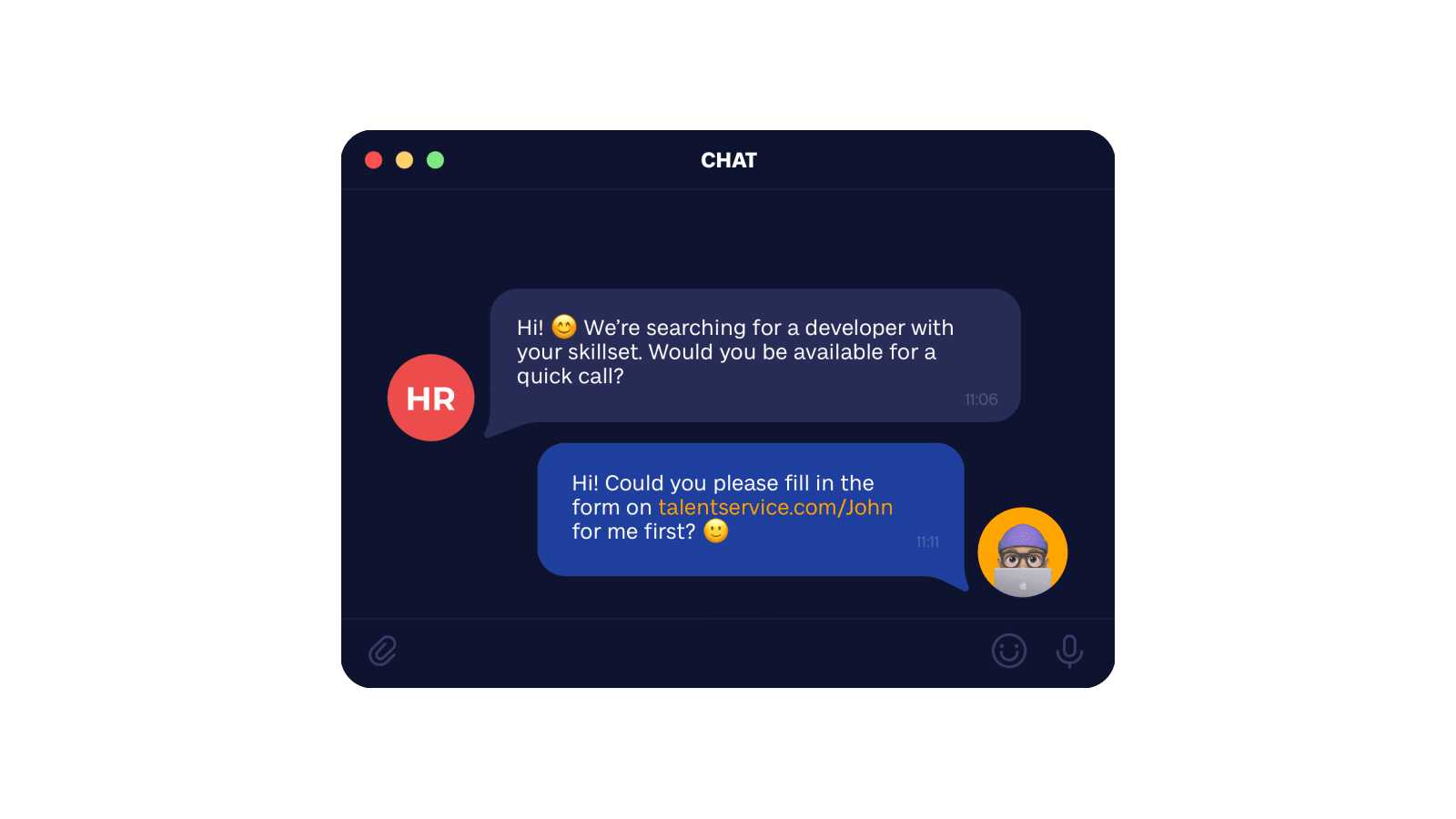 Платформа помогает IT-специалистам подбирать релевантные для них вакансии по стеку технологий, задачам и стремлениям карьерного роста. Дополнительно Talent Service генерирует анкету, которую кандидат может отправить рекрутерам, чтобы на основе их ответов оценить офферы по базовым критериям: доход, график и процесс работы, дополнительные требования к соискателям. Все ответы собираются в единую таблицу, где разработчик сможет сравнить сразу несколько предложений о работе.