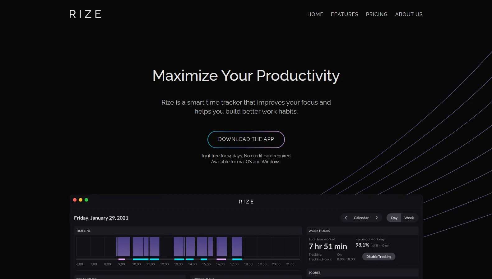 Rize.io предлагает 14-дневную бесплатную пробную версию своего платного плана, а платный план стоит 14.99 долларов в месяц.